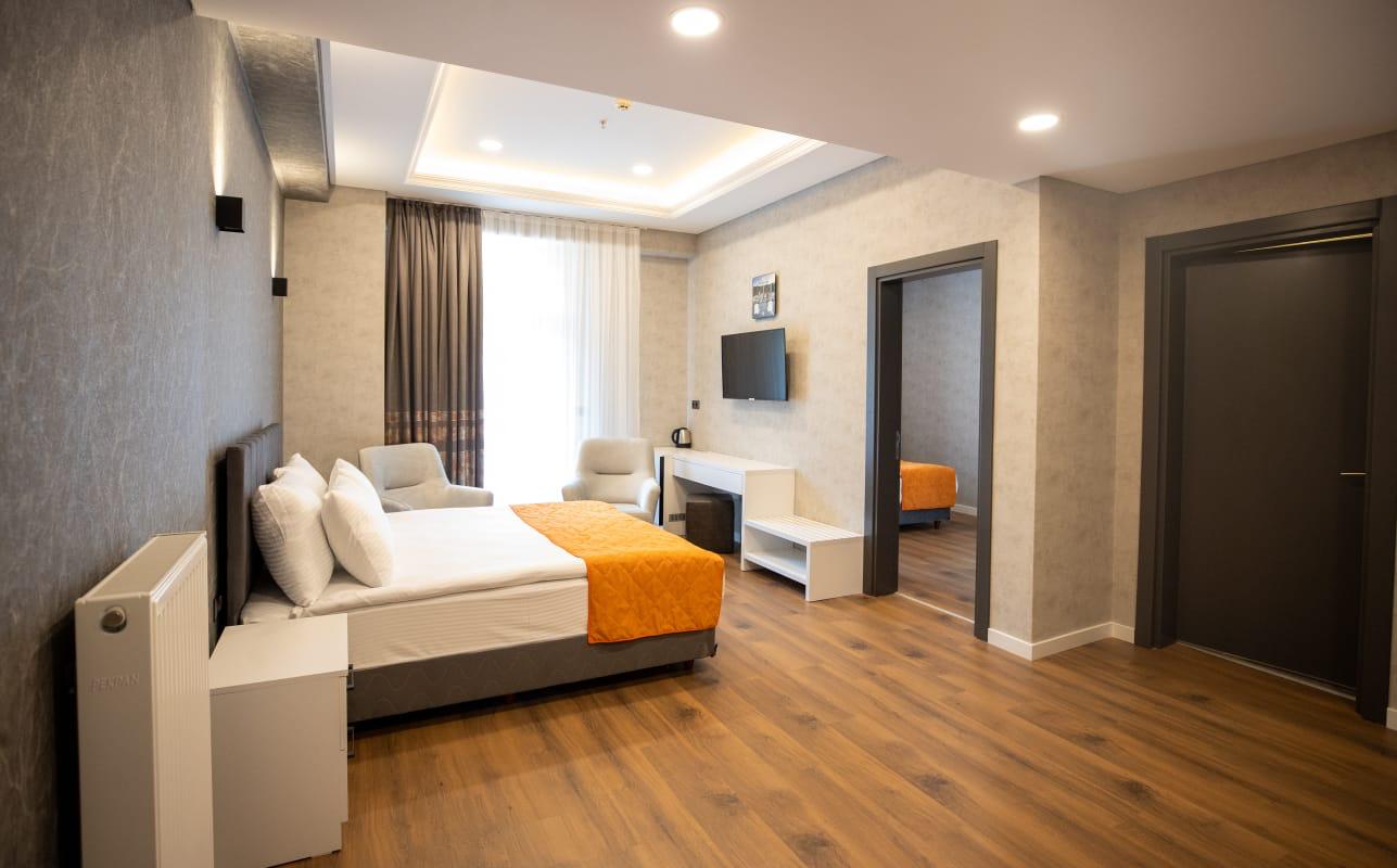 Famıly Room 60 m2’dir.1+1 oda şeklindedir.1 tane ebeveyn yatak odası ve 2 ayrı yatak mevcuttur.4 kişi kalabilir. İlave yatak atılarak misafir isteği doğrultusunda 5 kişi konaklama yapılabilir.